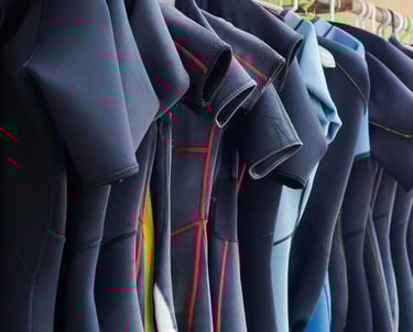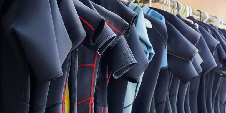 Neoprenanzug: Hergestellt aus Neopren, hält er eine dünne Wasserschicht zwischen Anzug und Haut, die durch Körperwärme erwärmt wird.
