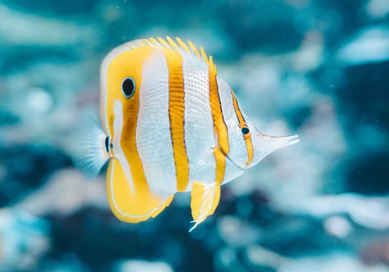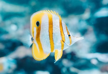 This family includes various species, such as the Threadfin Butterflyfish (Chaetodon auriga) characterized by their bright colors and distinctive patterns.