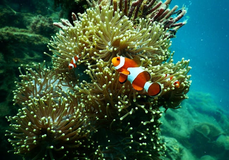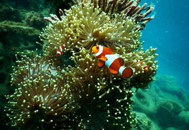 These colorful fish are commonly found in shallow reef areas and are known for their symbiotic relationship with sea anemones.