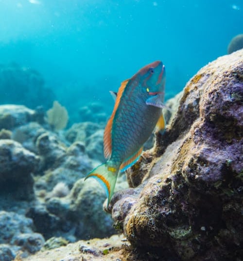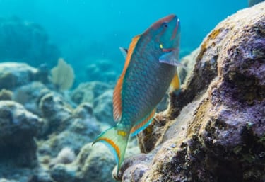 These fish are known for their vibrant colors and beak-like mouths, which they use to scrape algae off coral.