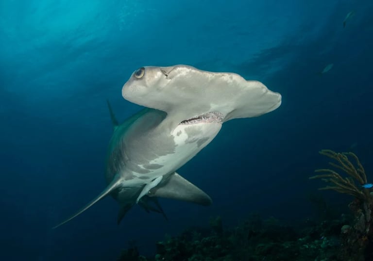 Known for its distinctive hammer-shaped head, this shark often swims in schools and is found in warm, tropical waters.